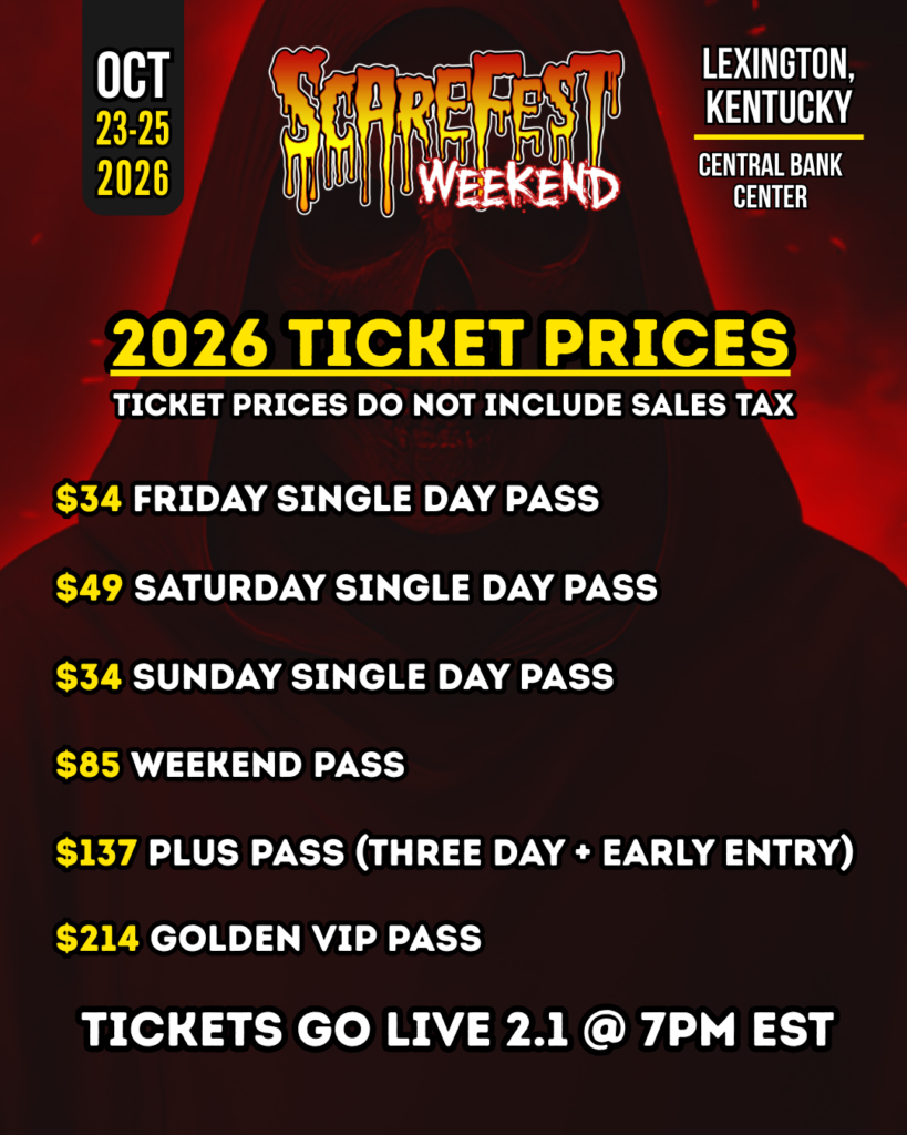 Buying a ticket to ScareFest does not guarantee that you will meet a particular guest. Tickets are for admission to the event only and do not include autographs, photo ops, or certain special events with guests. Panels are free for ticket holders unless it is clearly noted as a ticketed event. While we hope everyone gets to meet the guests they want, at times demand for some guests may be particularly high and it may not be possible for a guest to meet every person. VIP passholders will receive priority line placement as available. Professional Photo Ops purchased for high demand guests are guaranteed unless the guest is not able to attend. If anyone purchases a professional photo op with a guest that is unable to attend for whatever reason, those are automatically refundable, however admission tickets are NOT REFUNDABLE.